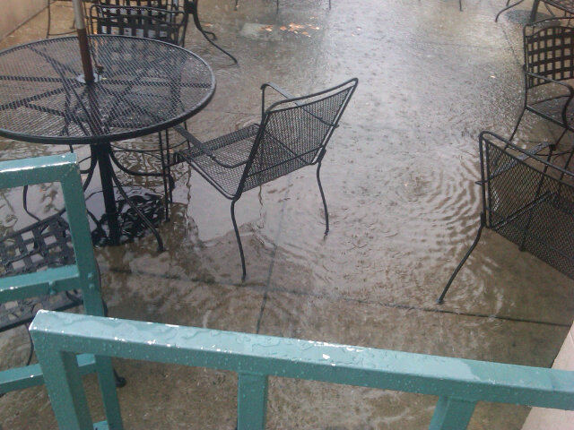 Meanwhile, yesterday's torrential downpour led to another tragedy: nearly unthinkable flash flooding at the Macaroni Grill. A Restonian operative used the Twitter machine to "tweet" us this photo: